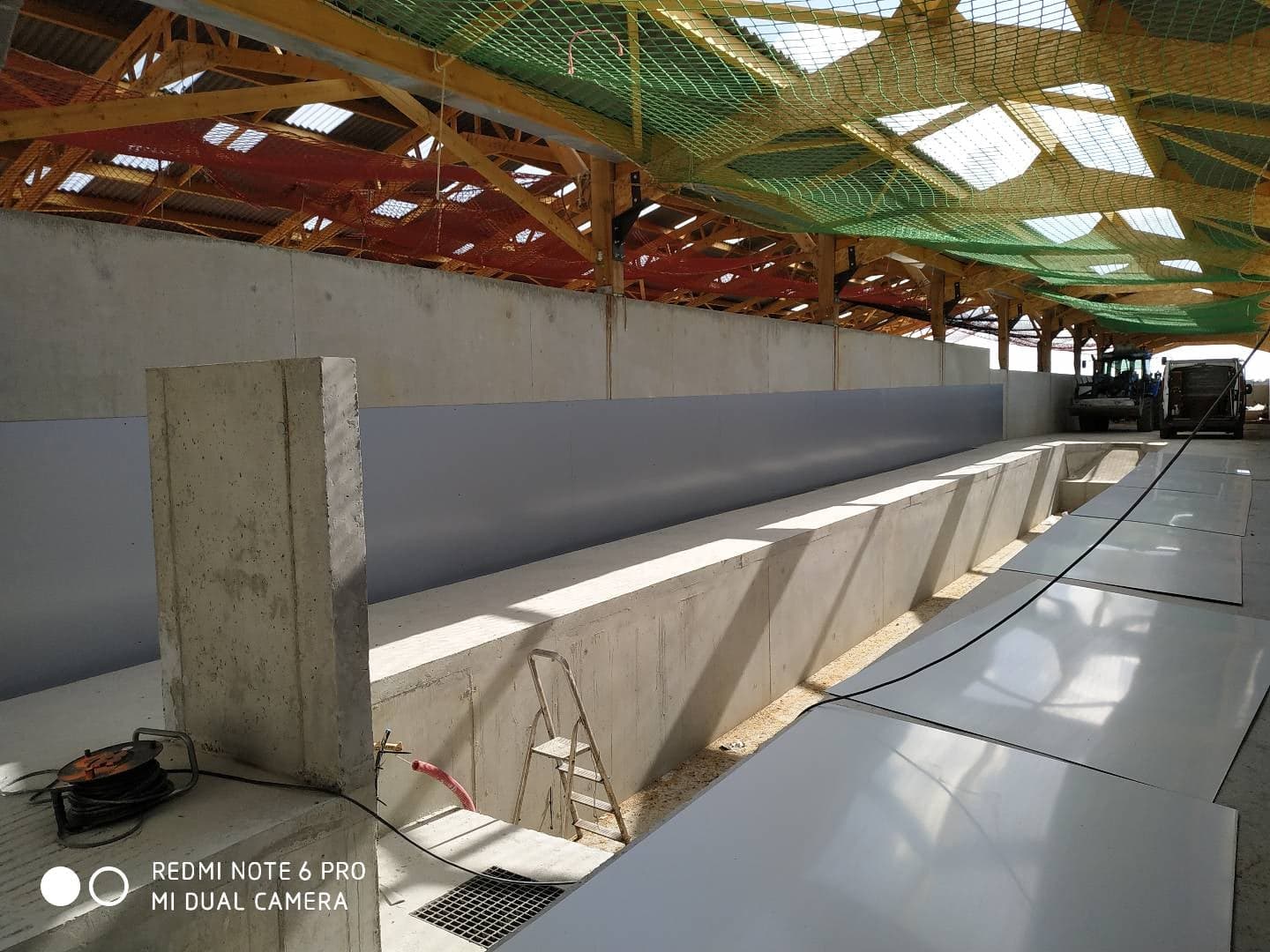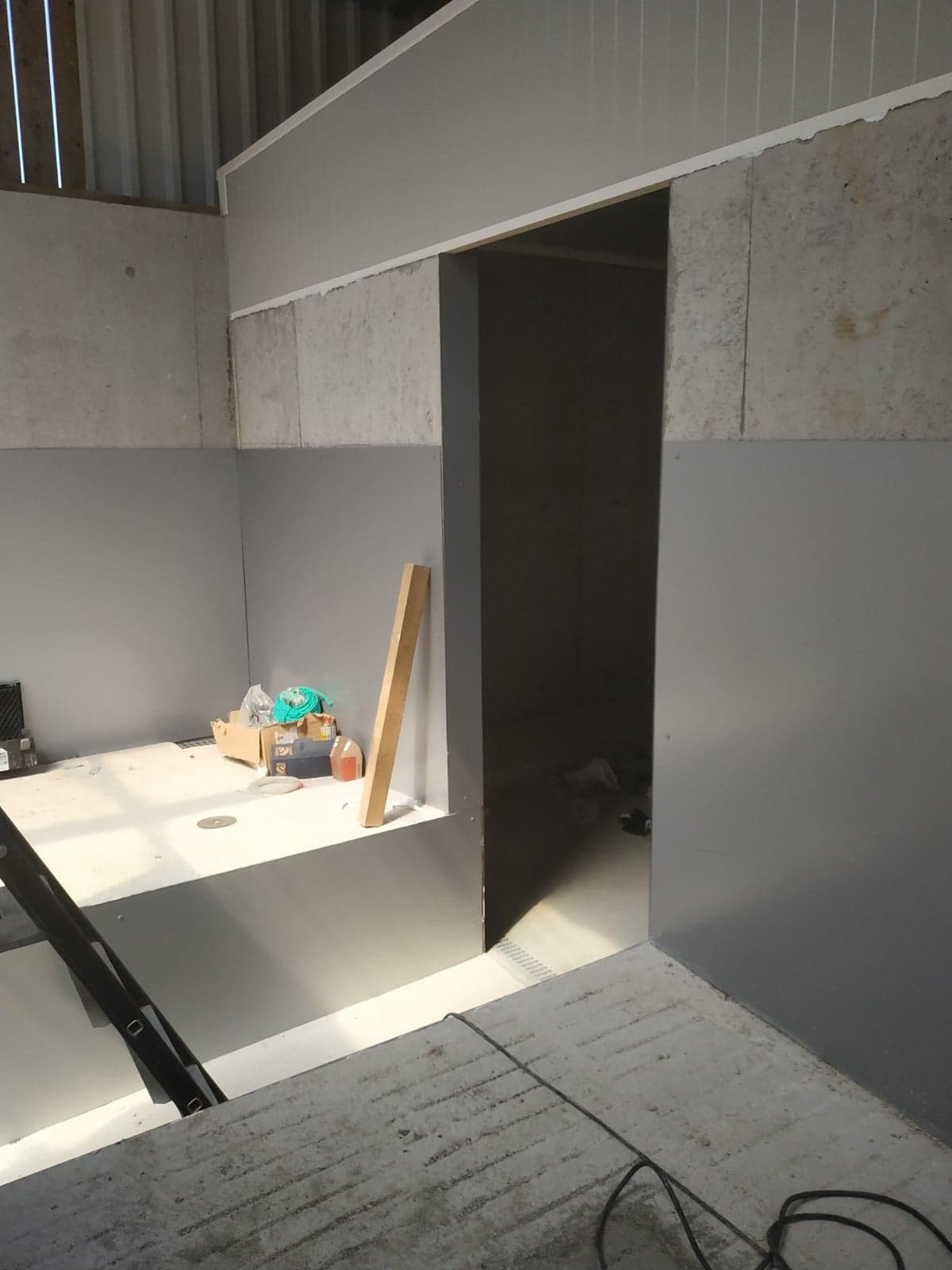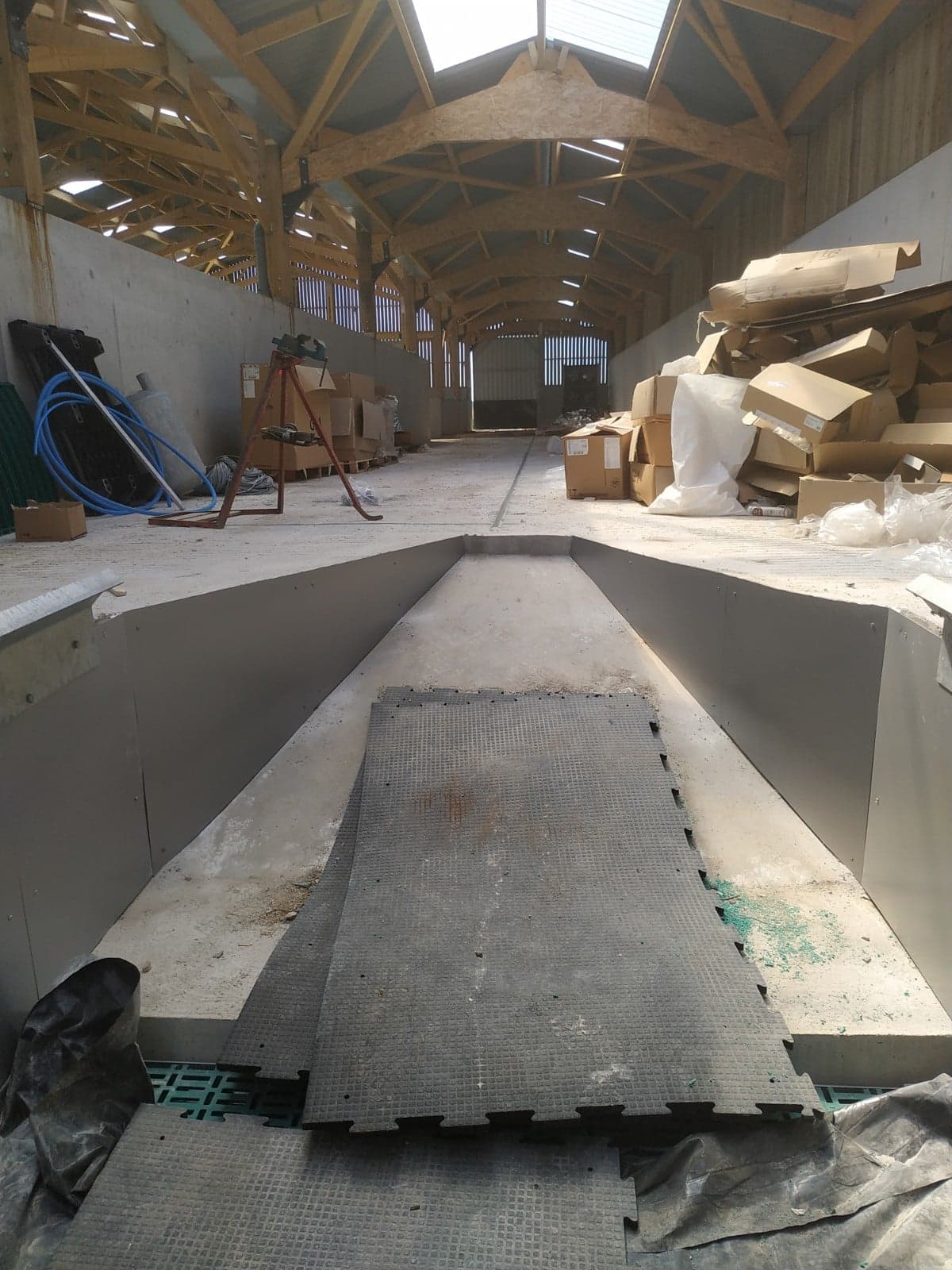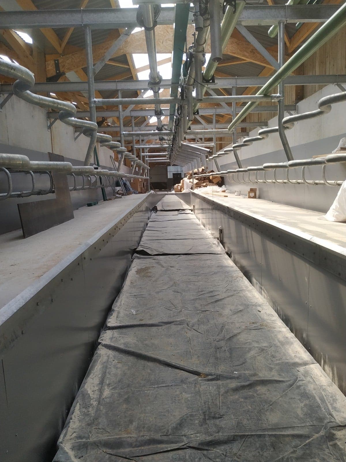 La pose de panneaux Alu DILITE permet que le nettoyage de la salle de traite soit plus facile. Les panneaux sont collés et rivetés au mur.